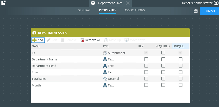- Create a SmartObject as shown below. This Department Sales SmartObject stores department and total sales data.