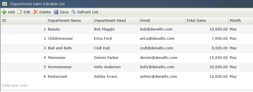 The example below uses a SmartObject called Department Sales . The data stores names and email addresses for each of the department heads as well as total sales amount per department. In the workflow scenario, an email is sent to all department heads using the Send Email step. This email contains the average sales figure across all departments.