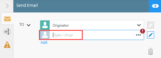 - To select a recipient click the To drop down menu. By default, the workflow originator is selected. Other options in this drop down include Originator Manager, Browse, and Type/Construct my own. In this example, click the Add link and then select the Type/Construct my own option from the drop down menu.