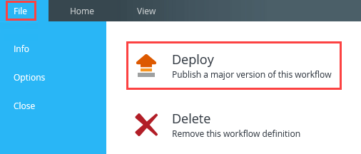For more information on deploying the workflow, see the Deploy a Workflow topic.
