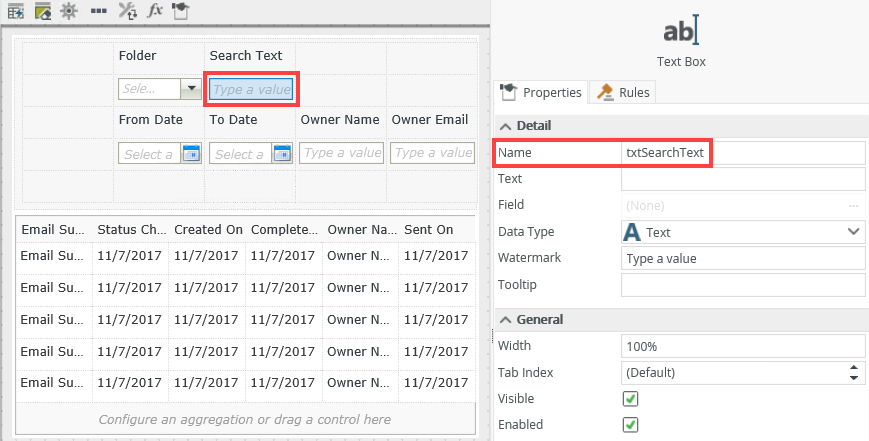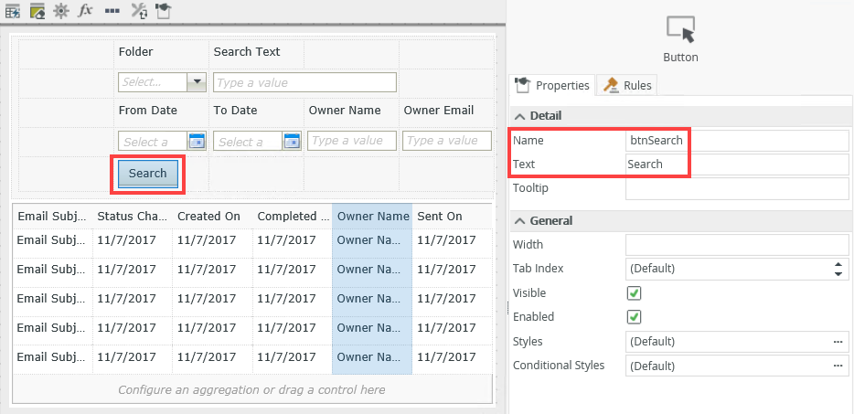 In this step, you add controls to the view. You will use these added controls as the search fields on the list view.
