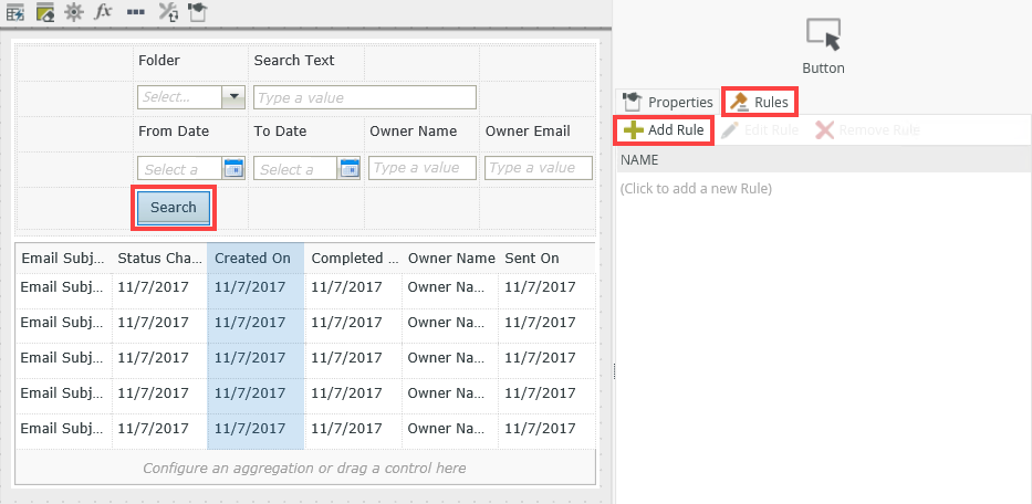 - Select the Search button by clicking it. Select the Rules tab and then click Add Rule.