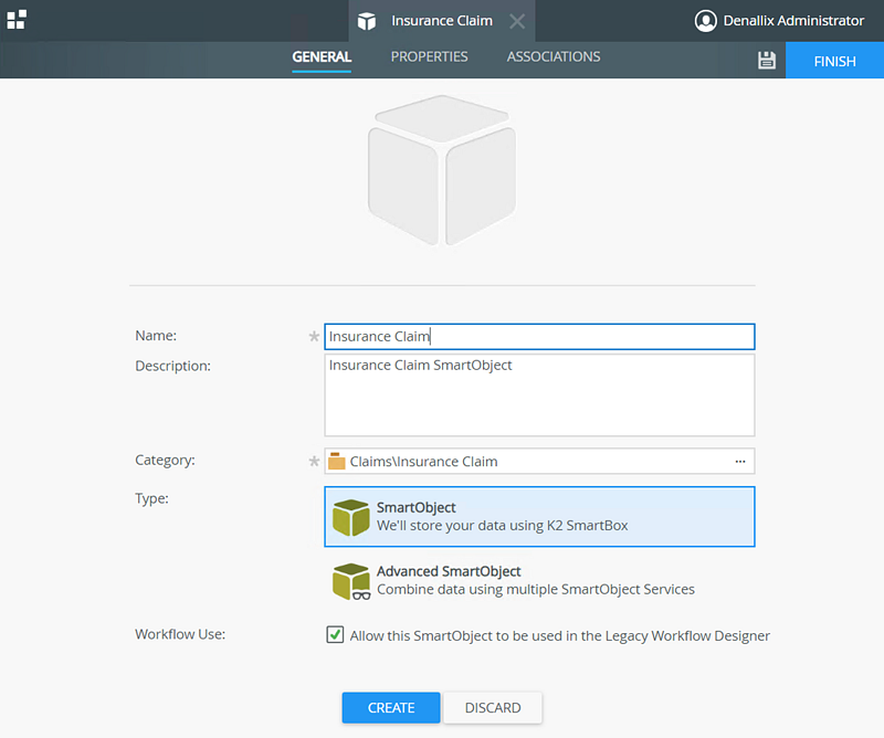 - Click select SmartObject. On the Select a SmartObject page, select the Insurance Claim SmartObject and click OK.