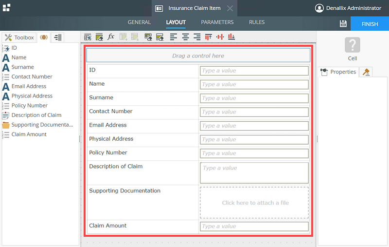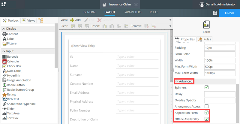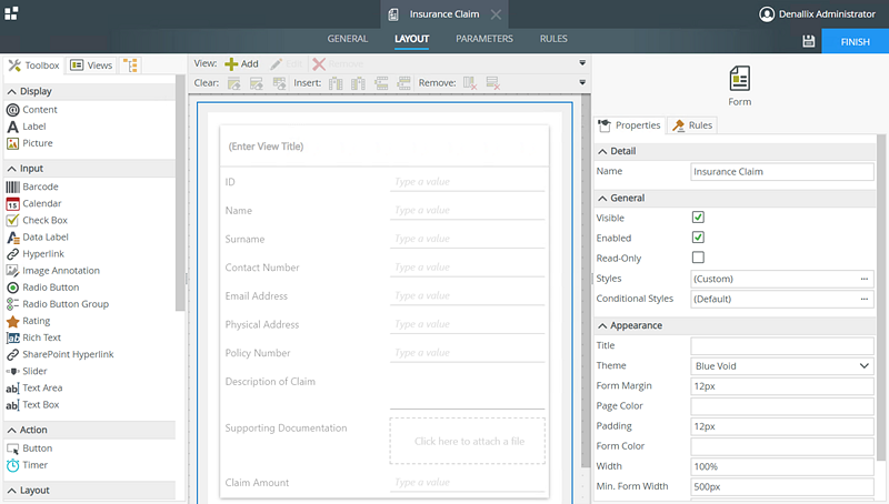 Use the steps below to continue configuring the parameters and rules for the Insurance Claim form.
