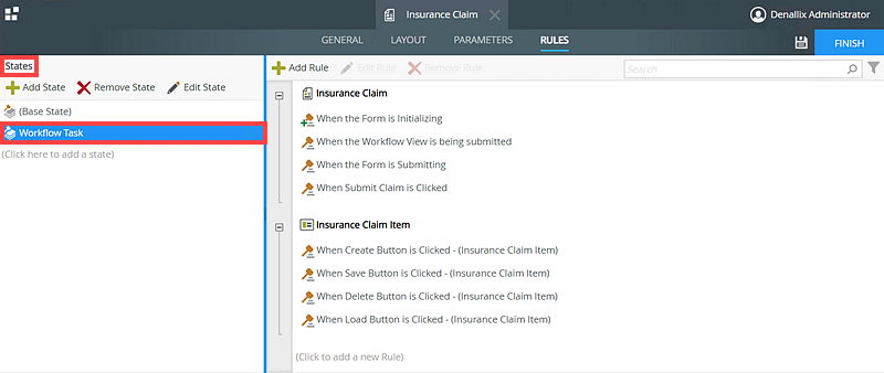 Configure the rules for the Workflow Task state on the Insurance Claim form