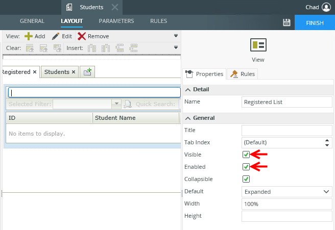 You can also configure views and tabs to be hidden and disabled by using Actions in the Rule Designer or you can hide or disable views by changing the Properties of the view.