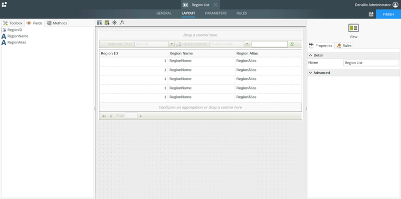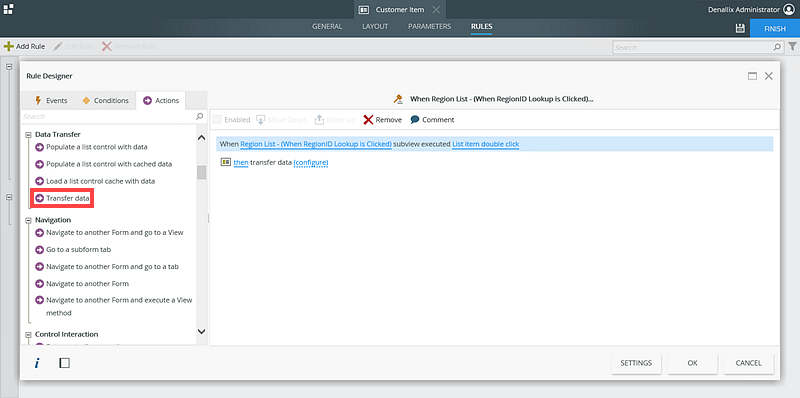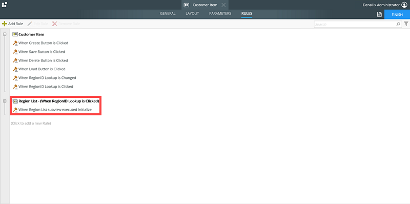 Note that the Region List subview executed Initialize rule is added automatically when adding the rule. This rule populates the Region List subview.