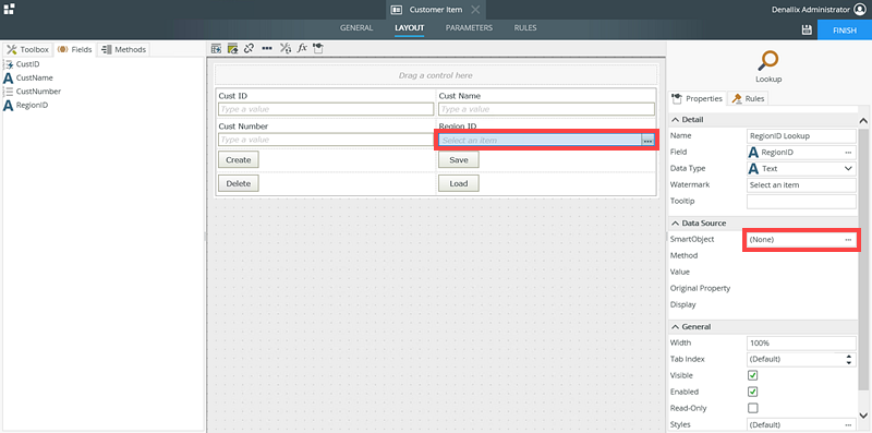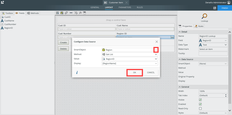 Follow the steps below to set up the Customer view with Region SmartObject Lookup.