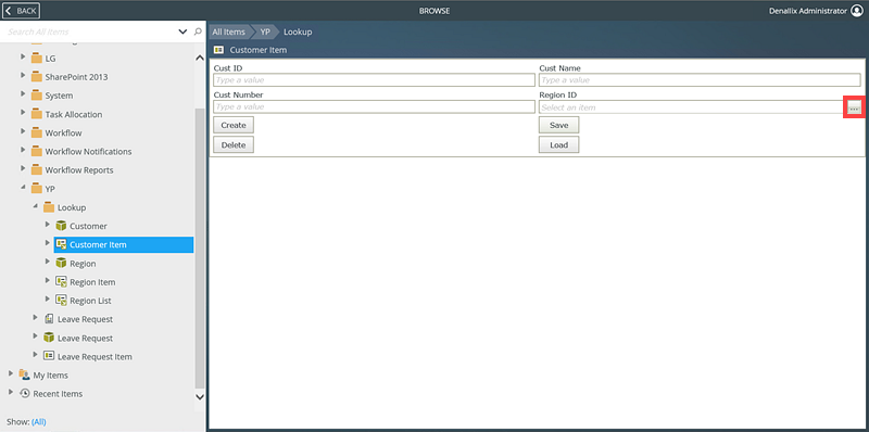 - Run the Customer Item view. Click the ellipsis in the Region ID control.