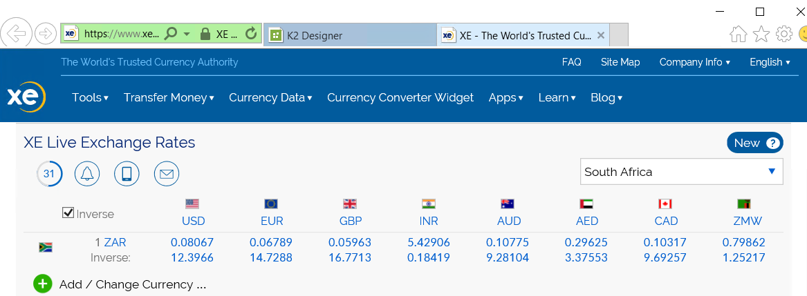 - The Live Exchange Rates URL opens in a new browser tab.