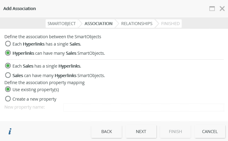 association shows on the Association tab of the Hyperlinks SmartObject. Click Finish.