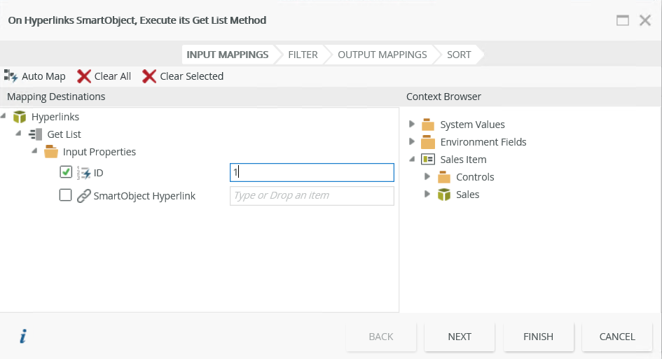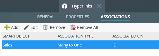 In this step, you create an association between the Hyperlinks and Sales SmartObjects.