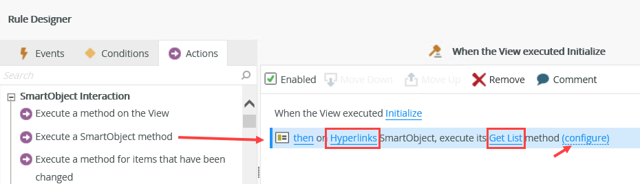 Select the Hyperlinks SmartObject, Get List method and then click configure.