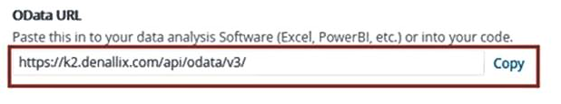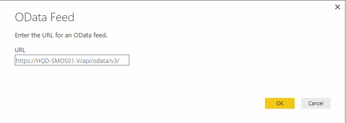 - Paste the K2 OData service URL into the URL text box, then click on OK. The feed URL is on the K2 Management page: