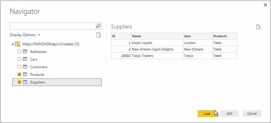 - Click on Load. Power BI displays the progress of accessing the SmartObject data.