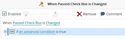- Add an event such as When a control on a View raises an event (When Passed Check Box is changed).