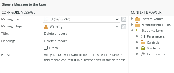 Use this to specify the message heading. The heading displays next to the message type icon. This is an optional field