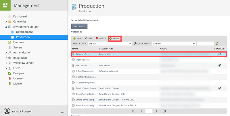 Follow the steps below to refresh a Environment field. This is used to retrieve the latest value of the field from the K2 server, in case another user had modified the value in since the list was last retrieved.