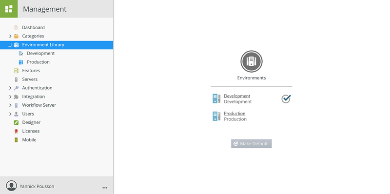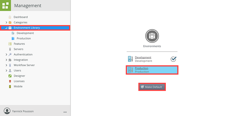 - On the Environment Library page select the appropriate environment and click Make Default.