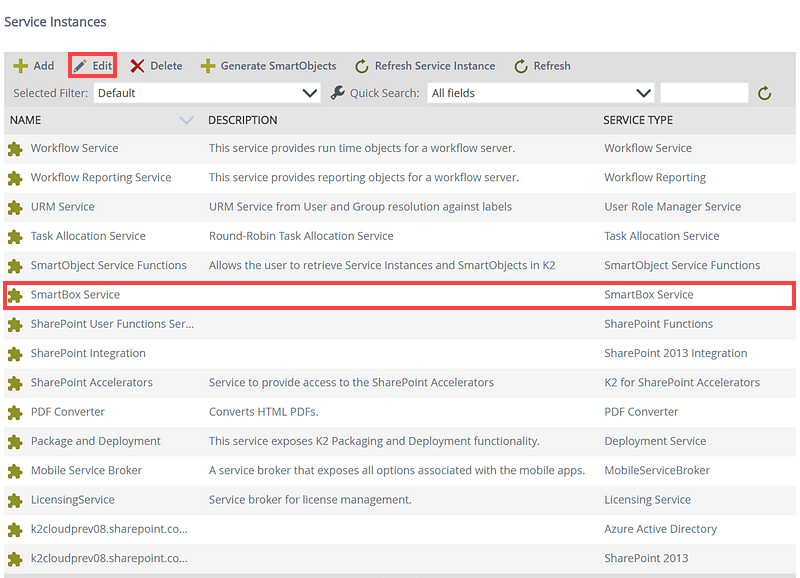 - Select the Service Instance you want to edit. The Edit button becomes available.
