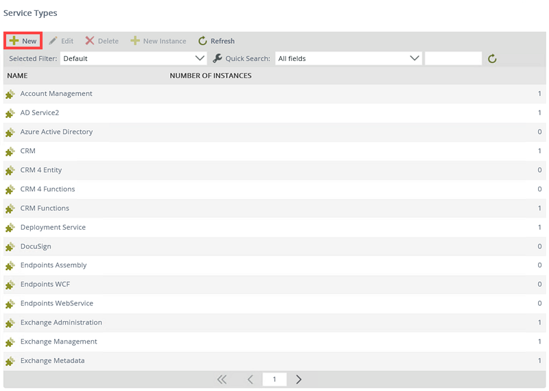 - Click New in the Service Types section.