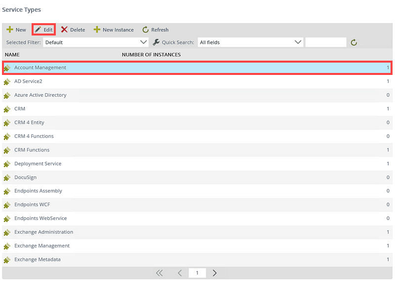 - Select a Service Type from the list and click Edit.