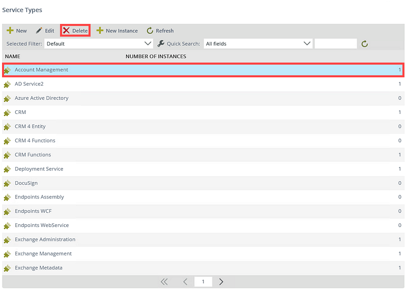 - Select a Service Type and click Delete.
