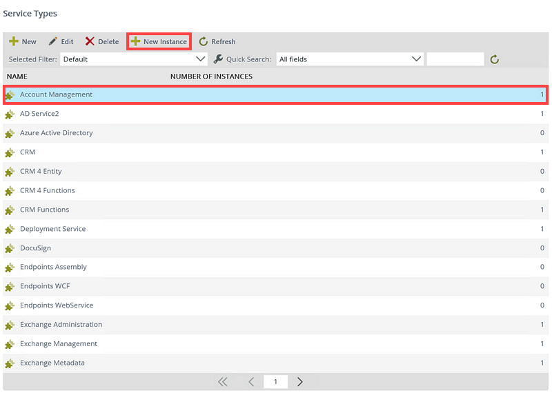 - Click on the Service Type you want to create a new instance for.