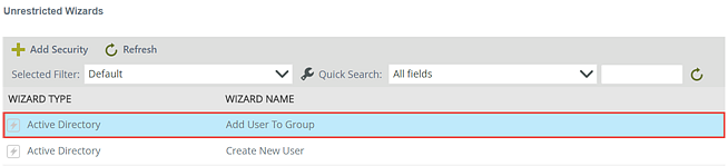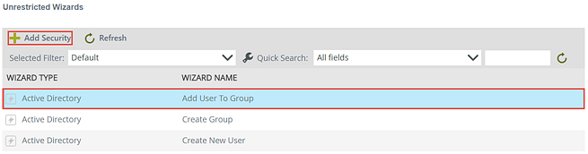 - On the Unrestricted Wizards view, select the SmartWizard for restriction and click the Add Security button.
