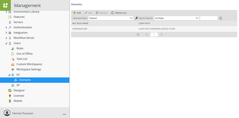- Add the new domain to your K2 environment. See the Adding a Domain section of this topic.