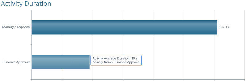 Activity Duration | Displays a horizontal bar graph of all activity durations of a specific process. |