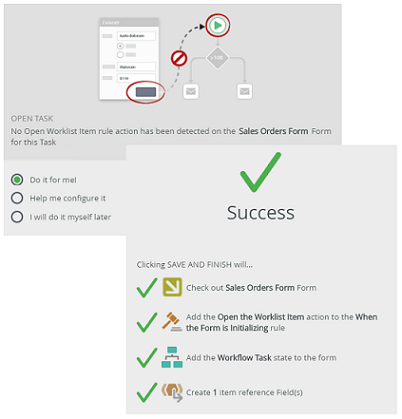 Creating a workflow is not limited by pre-configured artifacts or forms, which means you can build the workflow, and then add rules, SmartObjects, Forms, Variables at a later stage.