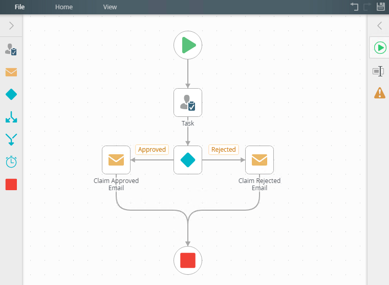 - When creating your workflow, when you try to deploy it you may see that the option is not available. Take the following workflow as an example. Notice the red exclamation mark on the Claim Rejected Email step.