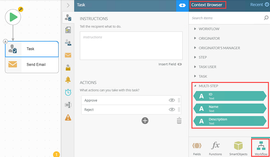 When you create a multi-step related workflow objects show in the Multi-Step section in the Context Browser.