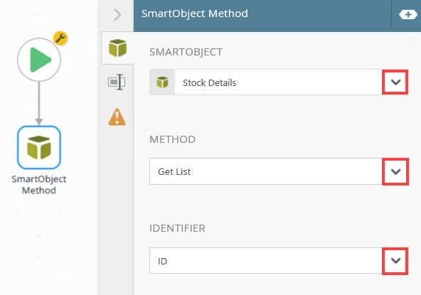 In this example, you add a SmartObject Method step to your workflow and configure the Stock Details SmartObject Get List method.