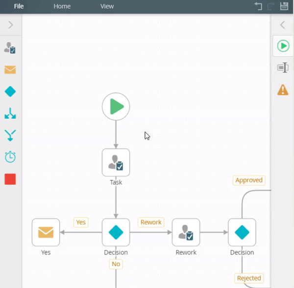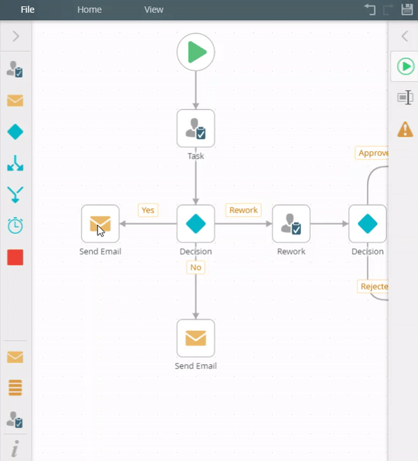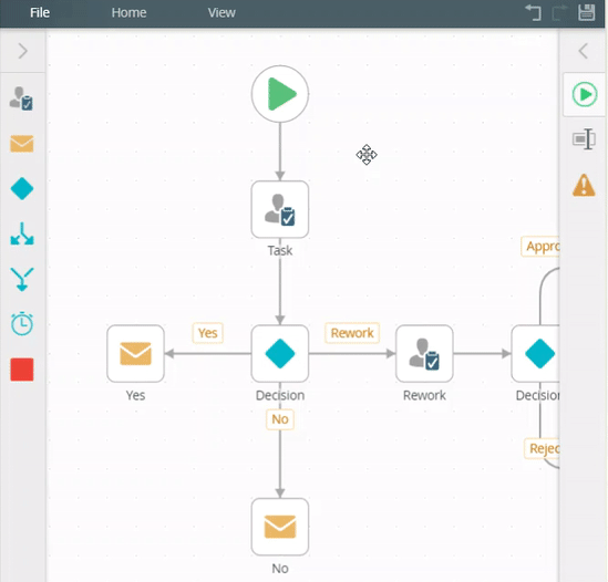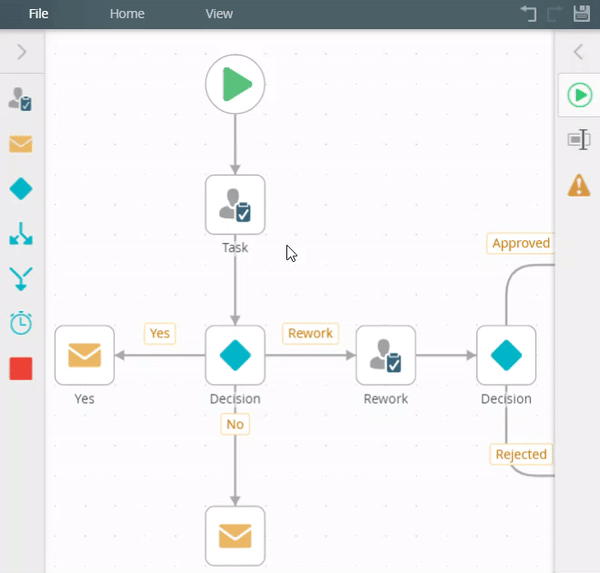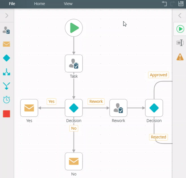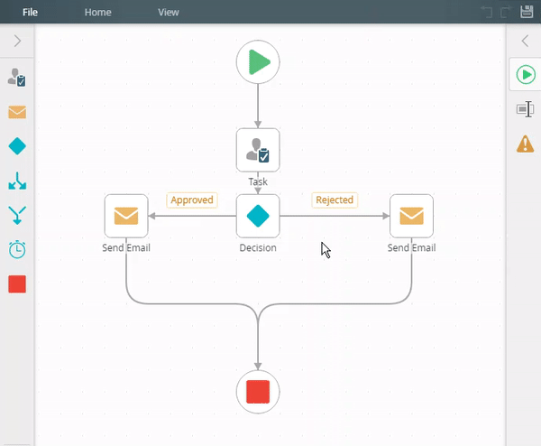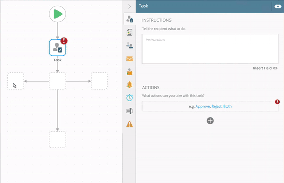 Decision step | Click the Decision step | Auto-connect task actions to placeholders connected to the Decision step.