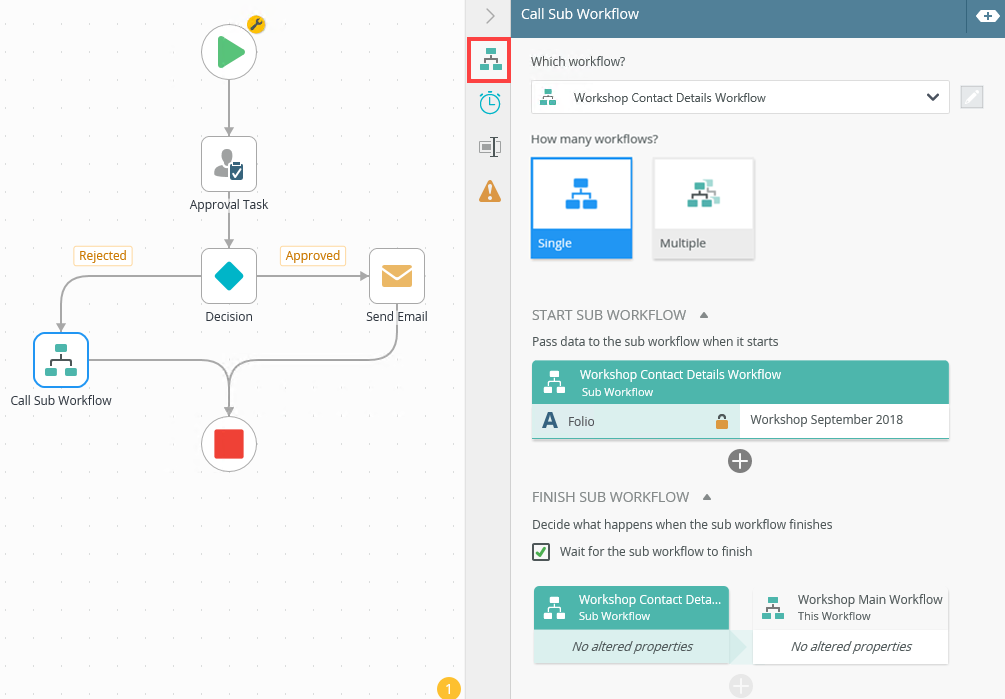 - Depending on settings, a sub workflow can allow a single workflow or multiple workflows to run in parallel