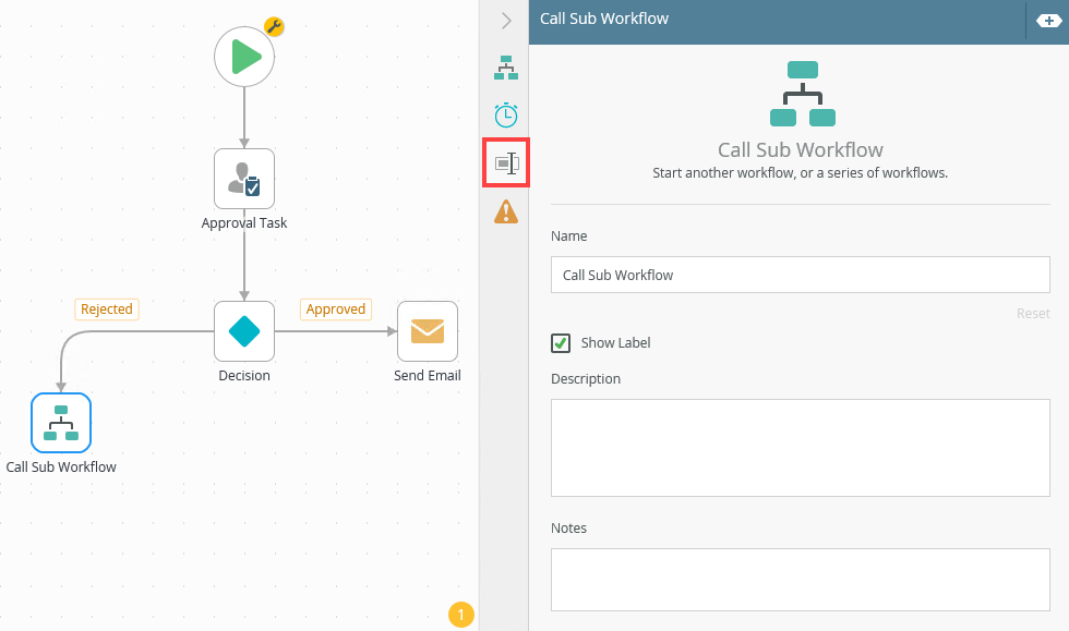 - The sub workflow starts when the rejected path is followed in the main workflow