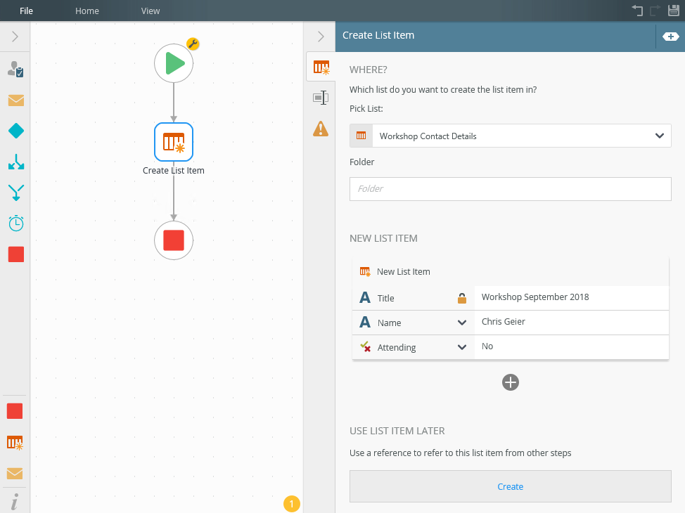For more information on adding SharePoint steps to your workflow canvas go to the Toolbox SharePoint topic.