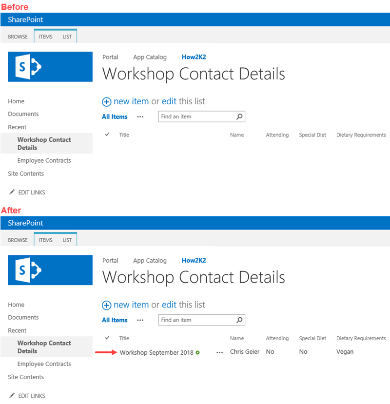- From the SharePoint Workshop Contact Details list, the sub workflow executed successfully and updated the list item as expected.