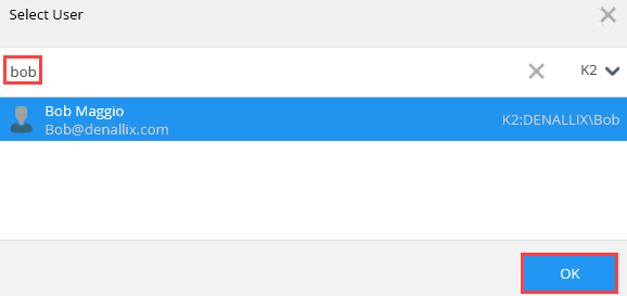 When you type a user name into the field, make sure it is a valid user and you've not made any spelling mistakes as user names are not validated. Typing an invalid user may result in orphaned workflow instances. If you think you have orphaned workflow instances, go to K2 Management and redirect the tasks to a valid user. .