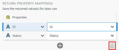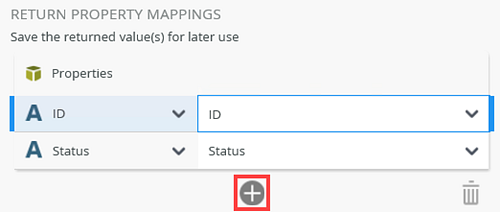 - Configure the Return Property Mappings. Click the add button to add properties. Select a value from the property drop down menu.