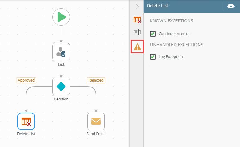 Continue on error | When this option is selected the workflow is not in an error state, but merely continues executing the next step. | Check the check box to continue the workflow. |