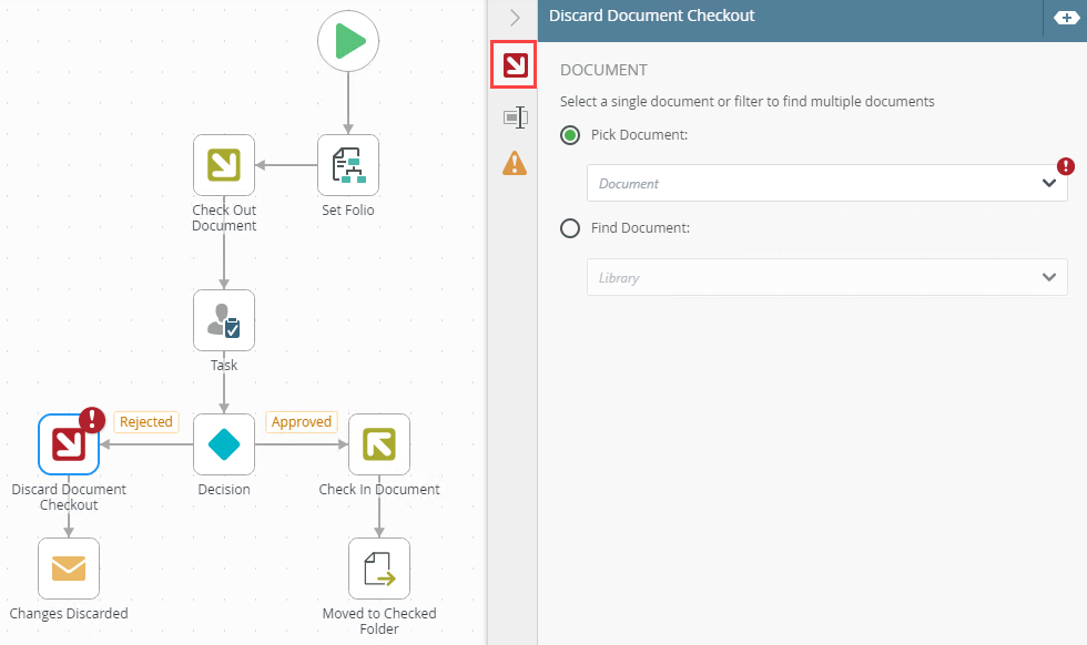 - Select the Discard Document Checkout tab. Use this tab to configure the step's properties.