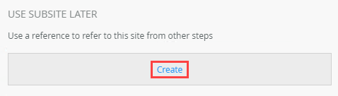 Use Subsite Later | Allows you to create a reference to the subsite to use from other steps within the workflow. | Click the Create link to create a reference. Click the Edit link to edit the reference name. If you edited the reference name and want to reset it, click the Reset Name link. |