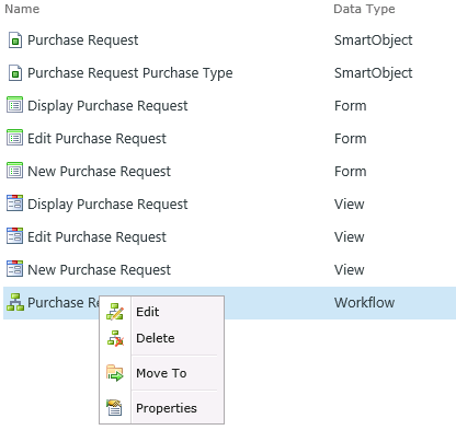 From the K2 Application page, you can edit or update an existing workflow as follows: