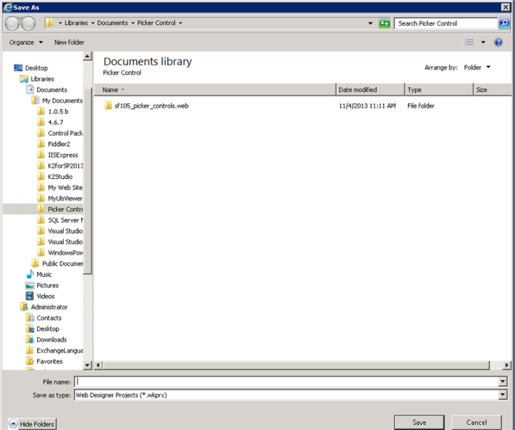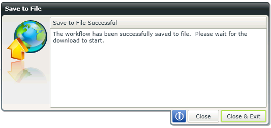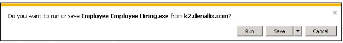You can use the Save As option from the design canvas to export your workflow to a local computer as a self-extracting file for use in K2 Studio or K2 Designer for Visual Studio. This allows you to extend the workflow design by adding code or additional functionality available in these designers. After you save the workflow for those applications you can no longer design the workflow in K2 for SharePoint and will need to use the other designers for future design.