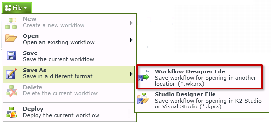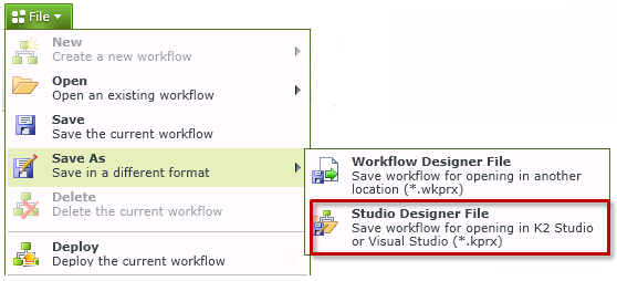 - Saving a K2 Workflow for editing in K2 Studio or K2 for Visual Studio