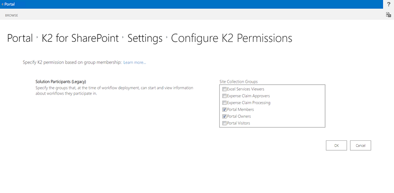 Use this option to specify K2 permissions based on site collection group membership. The available option is: