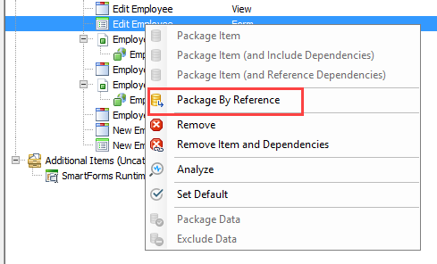 For example, if multiple workflows use an Employee SmartObject, the first package you create and deploy to a target environment contains the full Employee SmartObject artifact. Subsequent packages you create for other workflows that also use the Employee SmartObject should include the SmartObject by reference. The package will not contain the SmartObject definition, but when the package is deployed it will use the reference to create the required links and dependencies to the existing Employee SmartObject on the target environment.